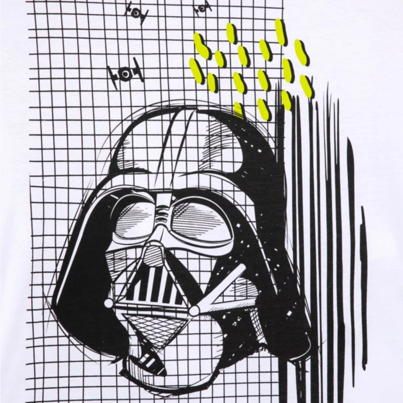 Be the ruler of the galaxy and style with this fashionable tee. It features an adjustable cinched hem and sketch-style artwork of Darth Vader with TIE fighter spaceships with a grid pattern behind him – perfect for showing off your allegiance to the dark side.