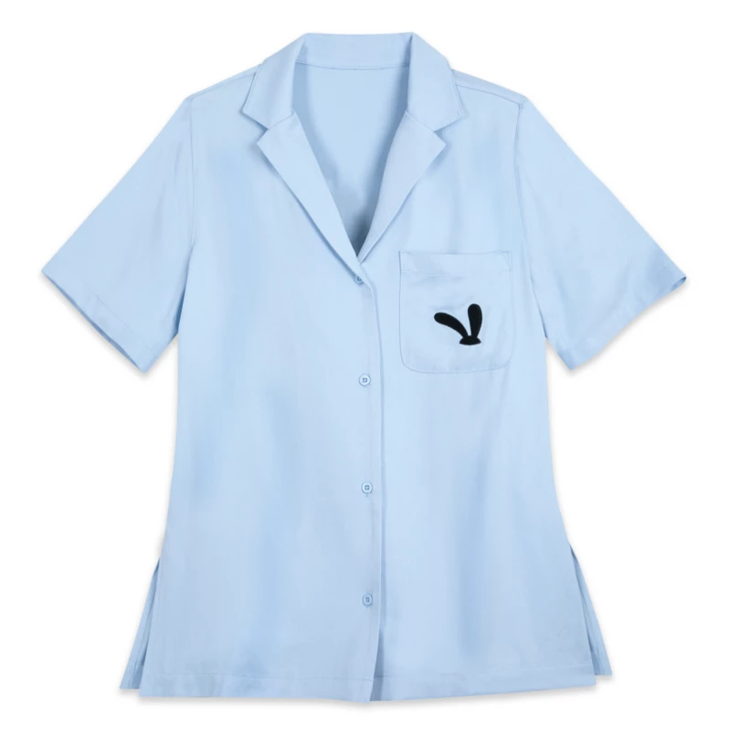 Oswald the Lucky Rabbit makes a magical impression on this woven button front camp shirt with collar and chest pocket. It’s a dapper look for any Disney day!