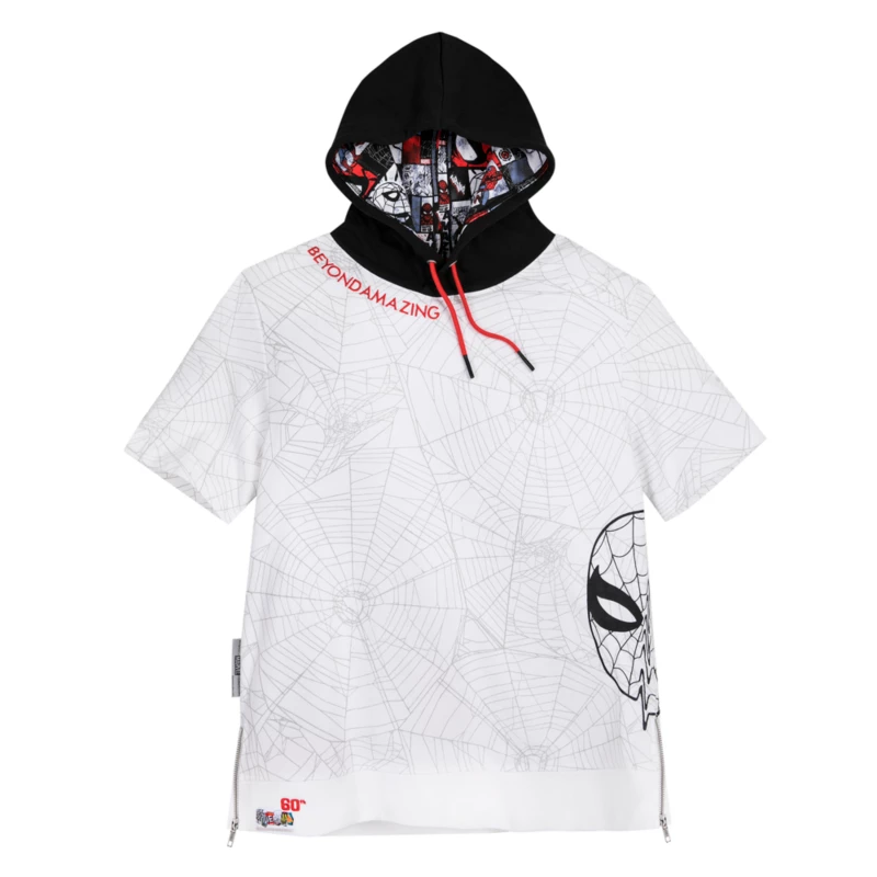 Put a spin on cool comfy style with this beyond amazing Spider-Man T-Shirt! Celebrating the 60th anniversary of the friendly neighbourhood hero it features Spidey mask artwork on the front and montage comic-style artwork on the collar with adjustable drawstrings.