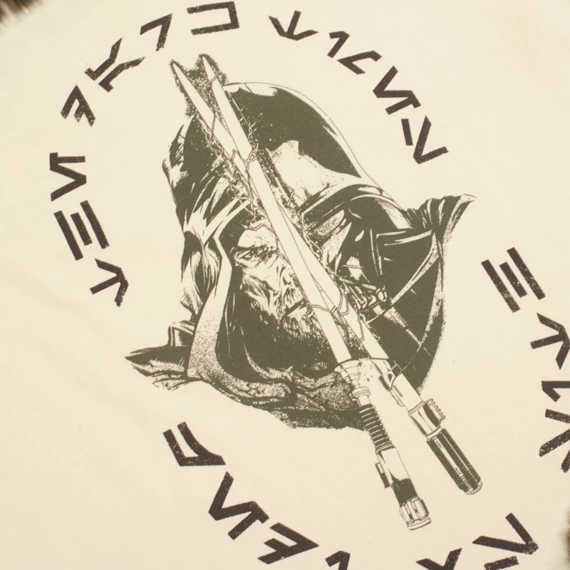 - Artwork on back includes: Aurebesh letters, Obi-Wan Kenobi and Darth Vader screen artwork, battle-locked lightsabers