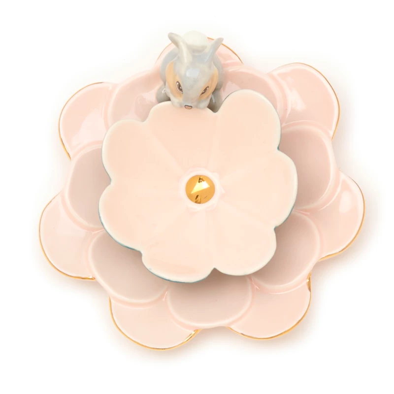 Thumper will watch over your precious trinkets in this beautiful tray. It features a tiered floral design with a figural ceramic Thumper and goldtone details and makes a wonderful home for your tiny treasures.