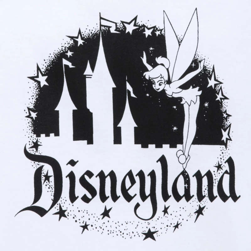 Tinker Bell takes her daring flight over the spires of Sleeping Beauty Castle, leaving a trail of pixie dust around the classic Disneyland logo on this nostalgic tee. Hostess of Disney’s TV series and Fantasy in the Sky spectacles, she returns to ignite emotional fireworks in honor of our 100th Anniversary celebration.