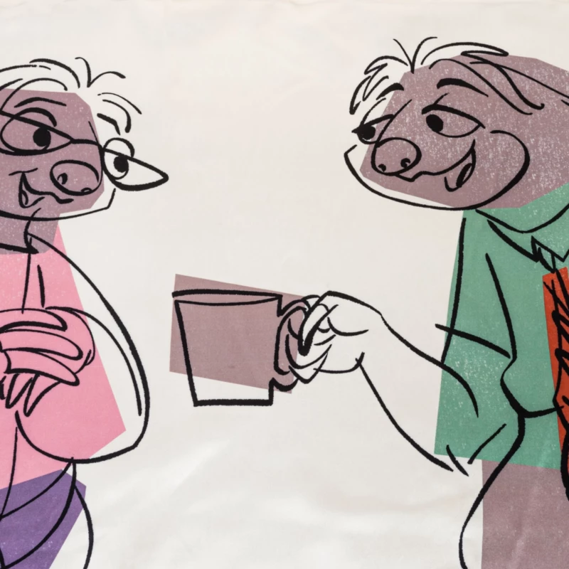 - Pillow case with screened art of Flash Slothmore and Priscilla Tripletoe
